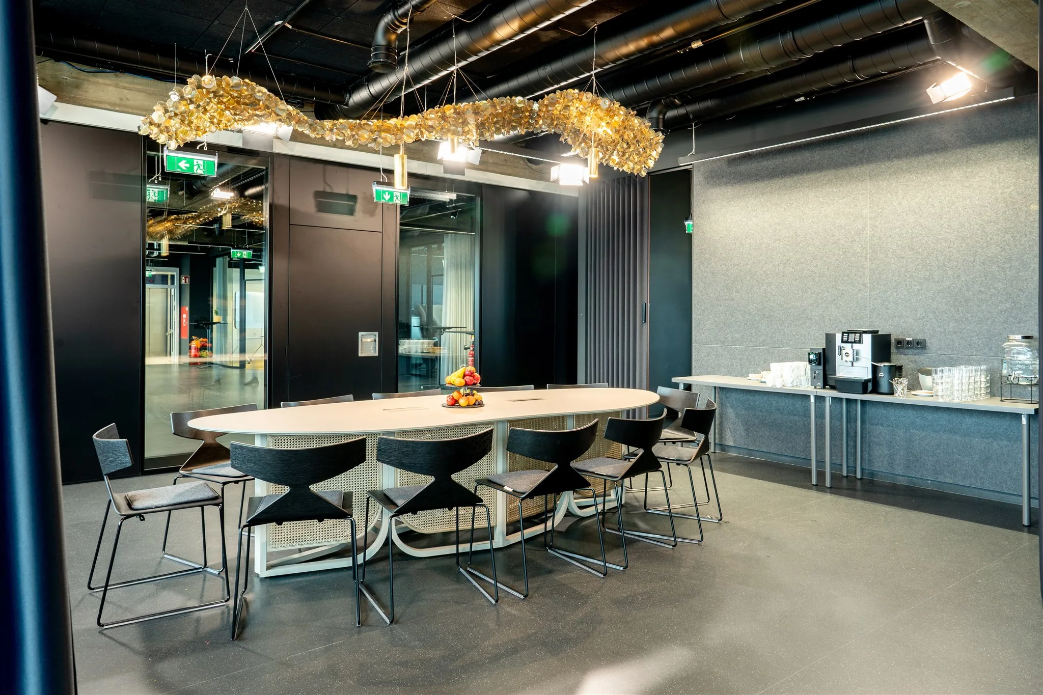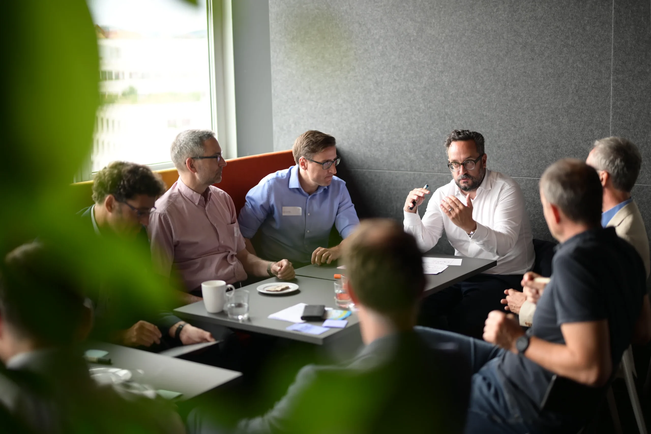 Unser klimatisierter Veranstaltungsraum hat viel Tageslicht durch Panoramafenster und ist modern eingerichtet. Er kann flexibel für verschiedene Setups eingerichtet werden und hat topmoderne A/V Systeme für Präsentationen und hybride Events. Der Raum ist komplett ausgestattet für interaktive Workshops, einschließlich Flipcharts, Whiteboards, Bildschirme und Moderationskits. Unser Veranstaltungs-Support Team vor Ort sorgt von der Ankunft bis zur Abreise für einen reibungslosen Ablauf.