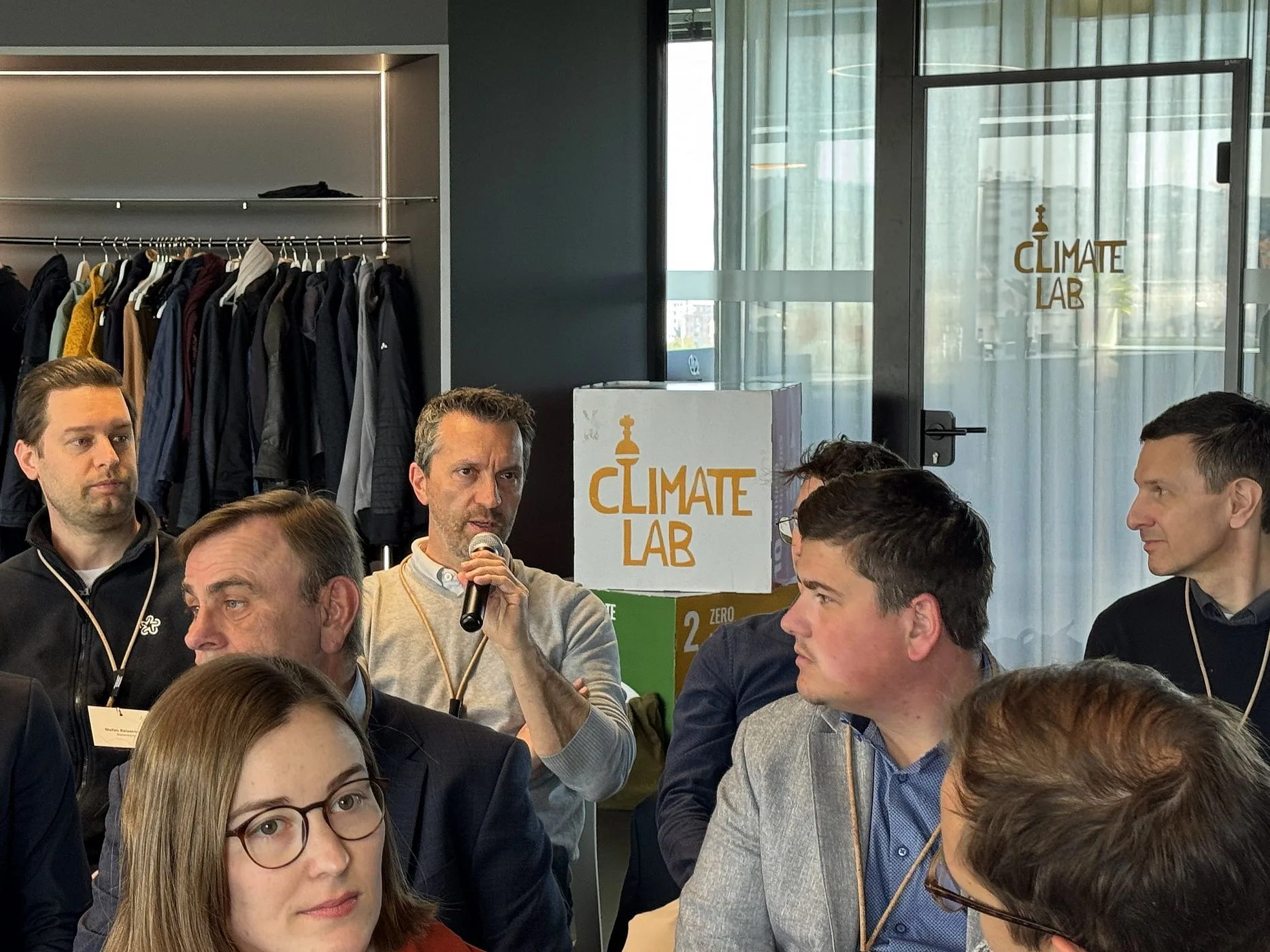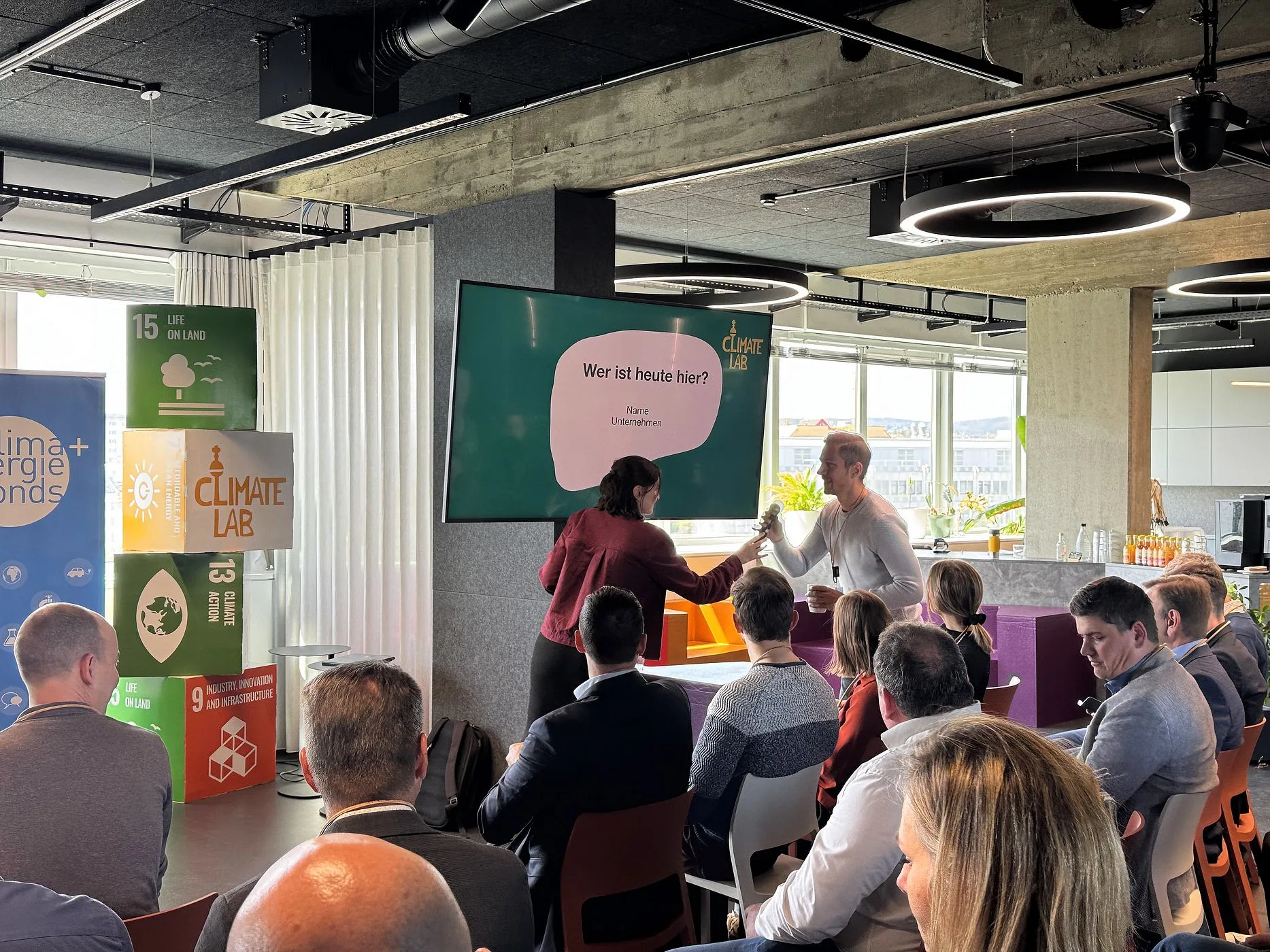Titelbild: Anna Grün-Lastin vom Climate Lab heißt die Teilnehmenden des Industry Circle willkommen.